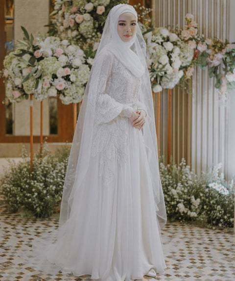 Tampilan gaun pengantin model ball gown milik aktris Citra Kirana ini bisa menjadi salah satu inspirasi bagi Anda para pengguna hijab yang sedang merencanakan pernikahan.